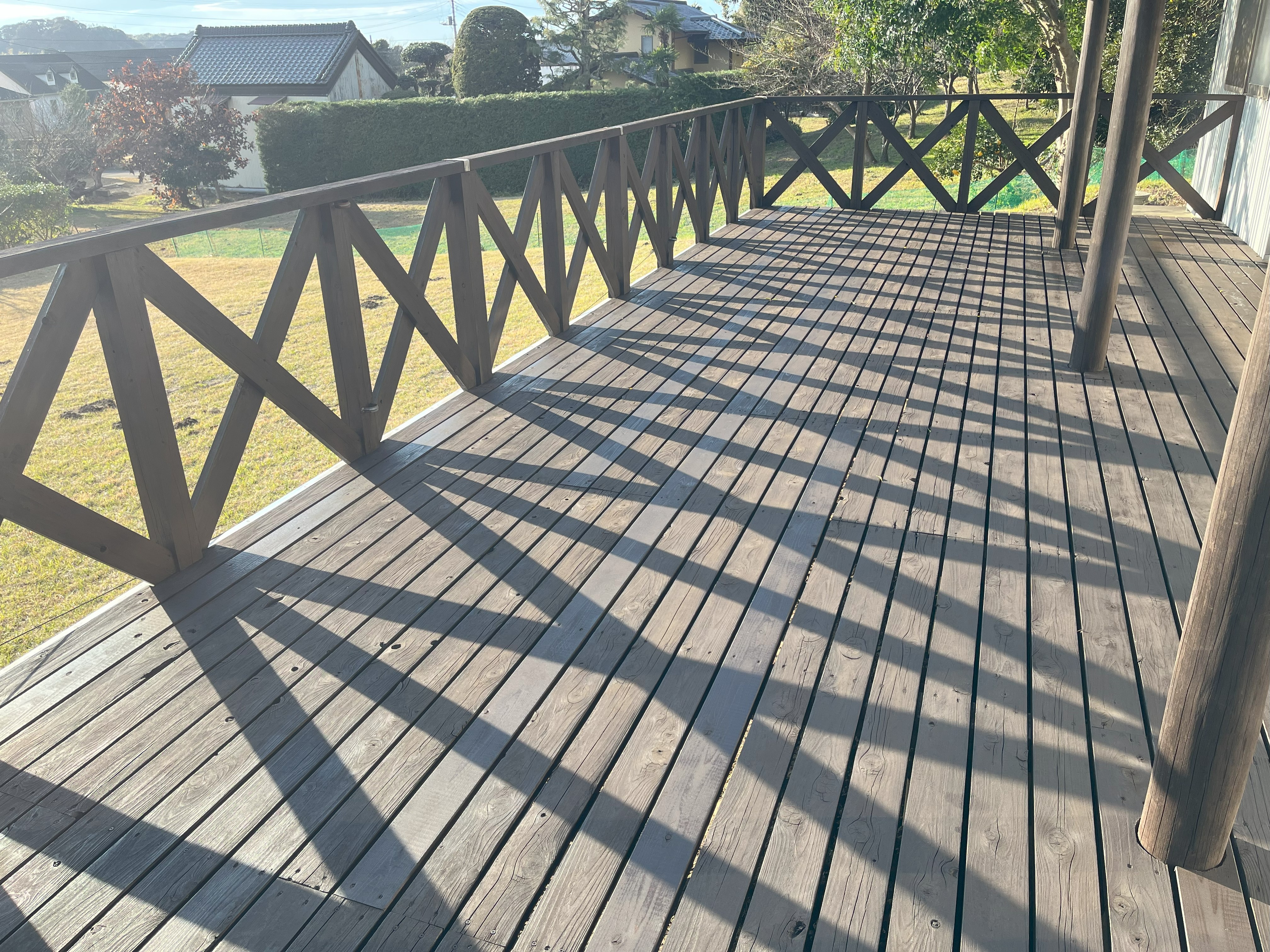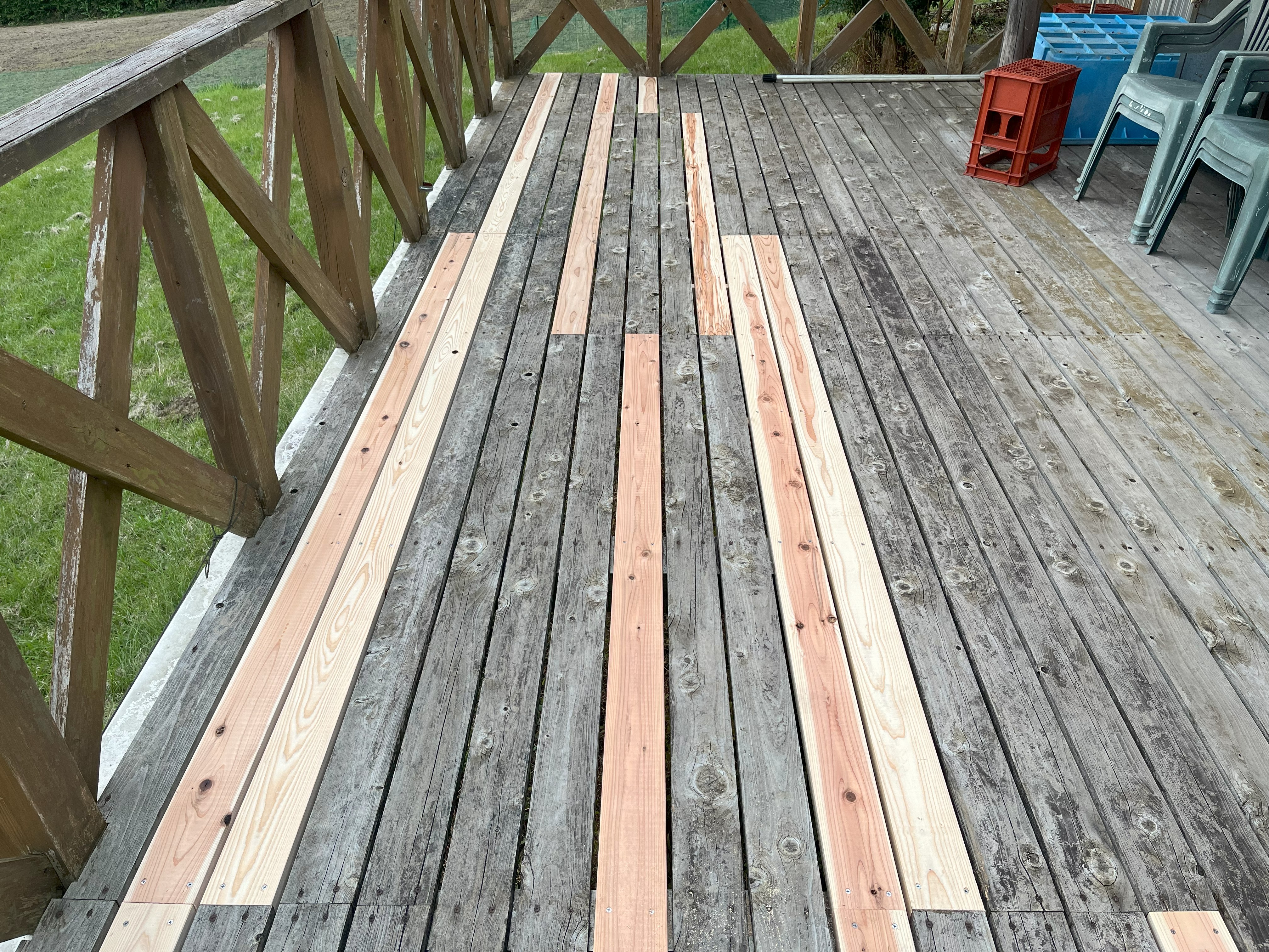 ウッドデッキ修繕工事 担当:山下大介 Before After 富津市 A様 ウッドデッキ修繕、塗装工事となります。 腐食部の床板材の張替え、既存塗料剥がし~防腐塗料塗布 ★ご自宅のウッドデッキ、木製濡れ縁を塗る場合、材料費が多少高くても、絶対に『防腐塗料(キシラテコール、他)』を推奨します!持ちと仕上がりに差が出ますよ! ~1年に1回位のペースで上から塗ると◎